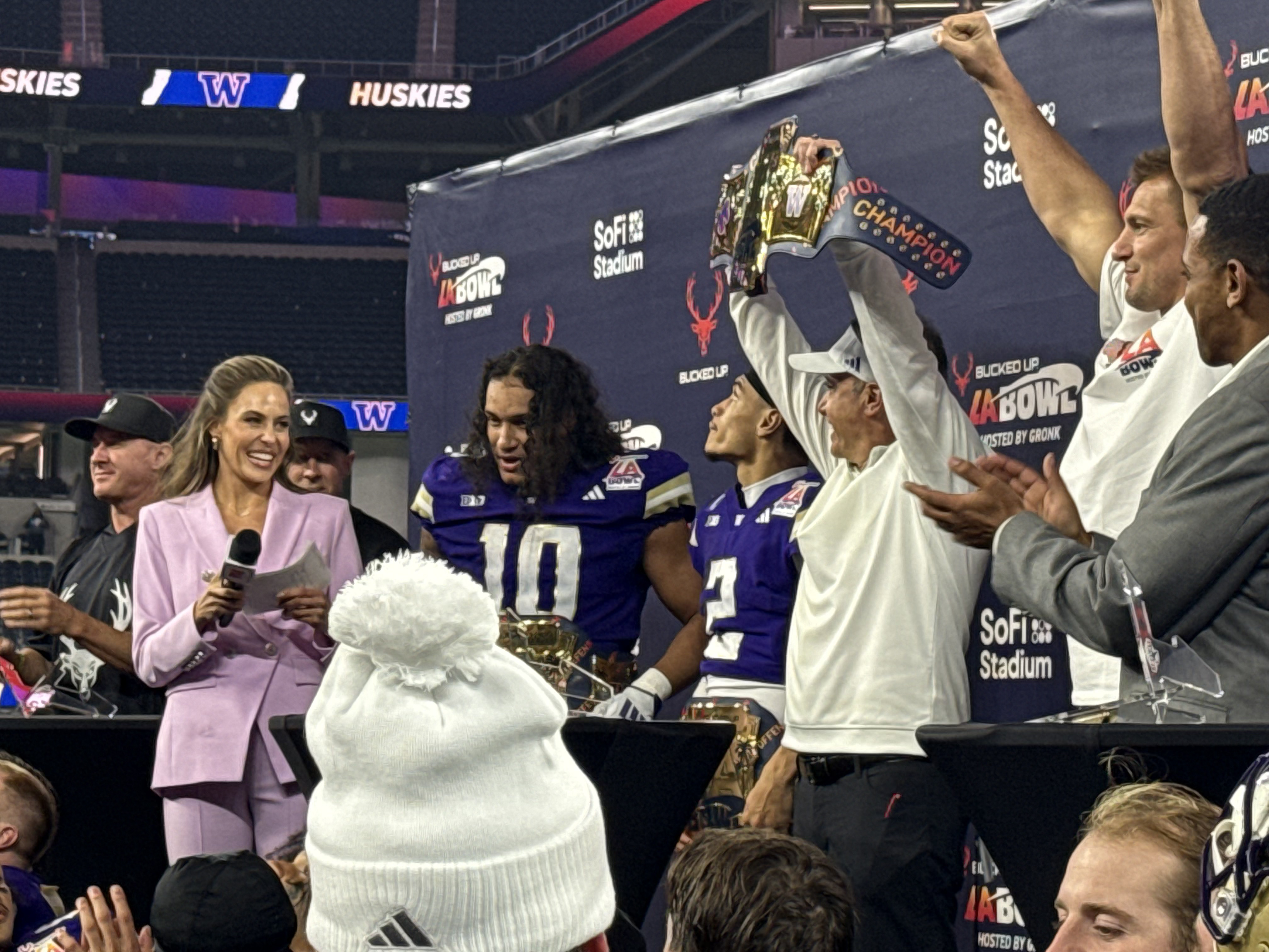 The postgame scene — Williams and linebacker Xe’ree Alexander awarded belts on stage for their MVP honors, Fisch hoisting another above his head as his players cheered — should remind of the 2022 Alamo Bowl, and the lengthy celebration those Huskies undertook in San Antonio, where they vowed to chase something bigger the following year.